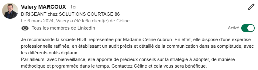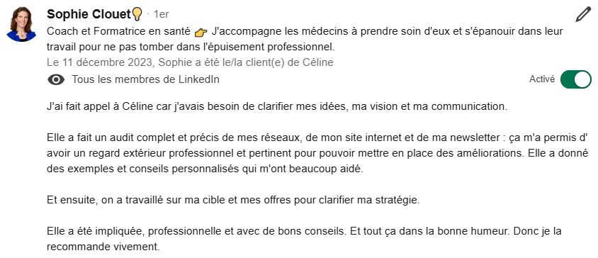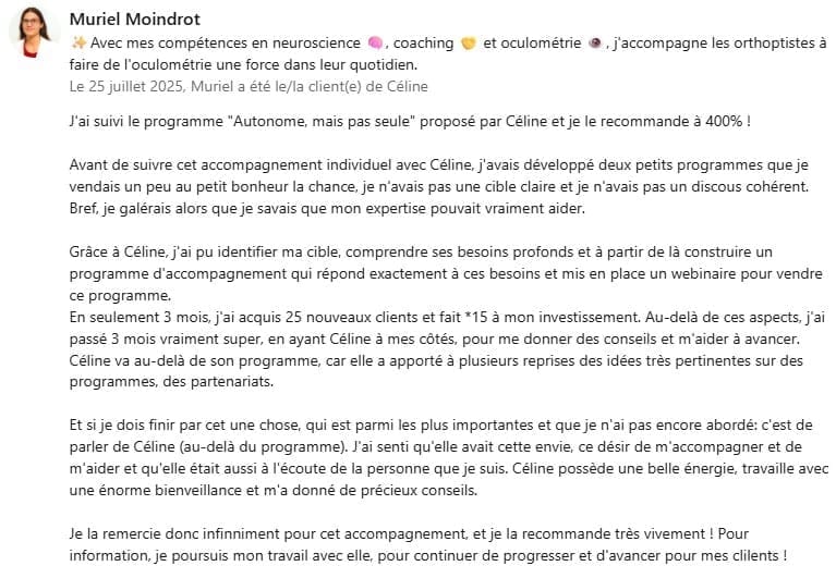 NB : retrouvez tous les témoignages de mes clients sur mon profil LinkedIn.