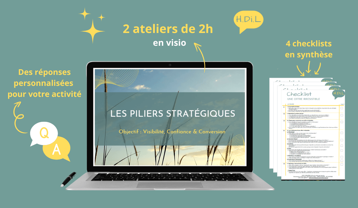🔸 Bonus offert : 4 checklists (une par pilier) pour conserver une synthèse des points clés abordés pendant les ateliers.
